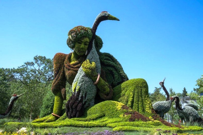 Топиарное искусство - придание растениям разнообразных форм с применением стрижки. Это искусство в озеленении появилось ещё в Древнем Риме. Из вечнозелёных растений создавались огромные шары, фигуры зверей и птиц. В эпоху Ренессанса новое веяние снова обрело популярность. Ни один парк не обходился без стриженых бордюров, замысловатых фигур и зелёных растительных лабиринтов. Позже, такими приёмами озеленения стали украшать и сады Франции. Самыми красивыми примерами топиарного искусства служат парки Версаль, Во-ле-Виконт во Франции, Хемптон-Корт в Англии. В России самый яркий пример - дворцово-парковый ансамбль Петергоф в Санкт-Петербурге. Стандартной методикой создания зелёной скульптуры является обрезка и стрижка. Весь процесс начинается с обрезки ветвей для первоначального придания формы. Стрижка предназначена для придания чёткости формы, проводится по мере необходимости. Самый наименьший период для создания топиарной фигуры - 6 лет. Сначала усиливают рост растения с помощью подкормок