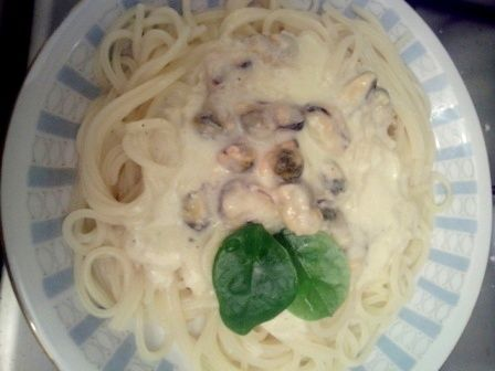 Мидии уже давно стали привычным продуктом для нас. Мясо мидий имеет сладковатый привкус и сильный аромат. Его отваривают , тушат и жарят , маринуют и солят. Прекрасно сочетаются мидии с рисом, пастой, овощами. Из них варят суп, готовят рагу, плов, пасту, суфле, салаты. В них много минеральных солей, витаминов группы В, витамина D и Е, а также фосфора и железа. Мясо мидий чистый, высококачественный белок.Жир мидий представлен жирными кислотами (Омега-3). Из мидий получается вкусный соус. Для пасты с мидиями нам понадобятся: мясо мидий замороженное, лук репчатый, молоко, сыр плавленный, масло сливочное, соль, перец белый молотый. Перед тем, как готовить мидии, их нужно разморозить. Для этого убираем замороженные мидии в холодильник где они оттают. Размороженные мидии промываем под проточной водой. Лук мелко режем, пассеруем на сливочном или топленом масле. Заливаем молоком и притушиваем. Можно для получения однородного соуса разбить лук блендером. Добавляем плавленный сыр и провали