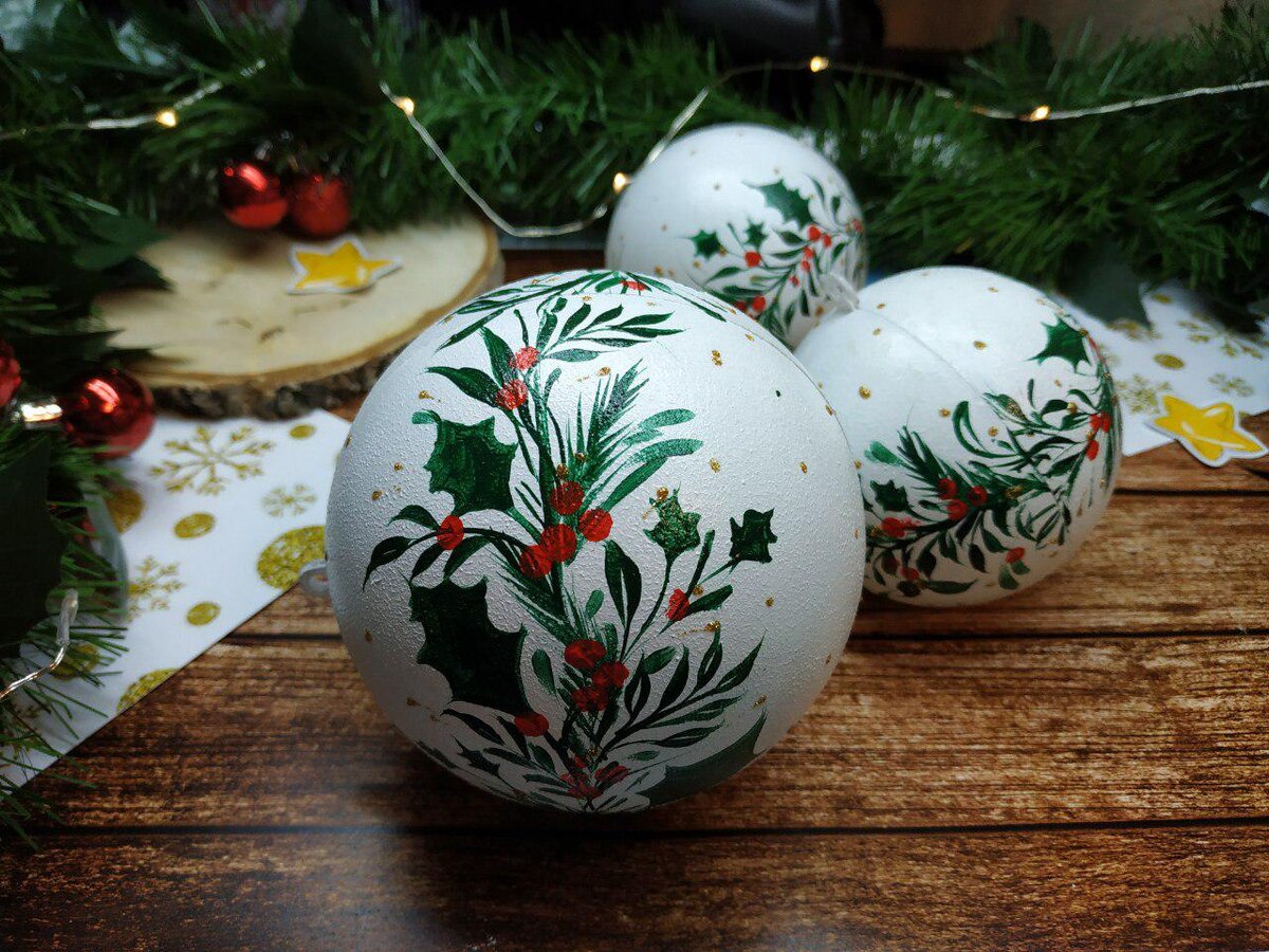 Простая и красивая роспись новогодних шаров. Нарисует даже ребенок!
