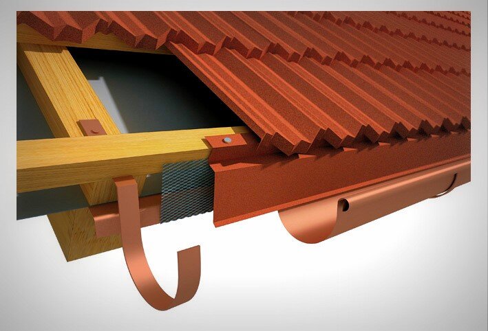Основное предназначение данного доборного элемента - защита лобовой доски от влаги. Она крепится после устройства обрешетки и перед креплением кровельных листов. Если планируется устройство водосточной системы, то перед устройством карниза нужно смонтировать крюки для устройства водосточной системы. Монтаж планки производится с помощью оцинкованного крепежа. Планки между собой крепятся с нахлестом в 1 см.;