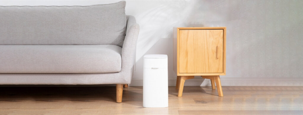Умная мусорная корзина Сяоми имеет минималистический дизайн и поставляется в белом цвете. Размеры контейнера составляют 330 × 188 × 370 мм, объем — 12 л. Благодаря узкой конструкции, разместить корзину Xiaomi можно в различных местах. Для автоматического открывания имеется ИК-датчик, его диапазон чувствительности достигает 30 градусов, это около 35 см.