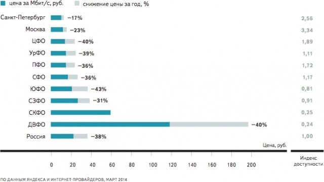 Яндекс, в своем ежегодном отчете "Интернет в регионах России" в марте текущего года рассчитал такой график: