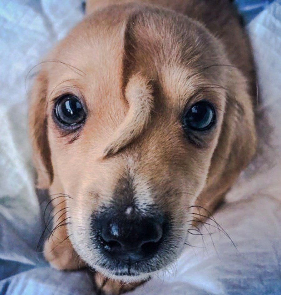 В Миссури нашли щенка-единорога: На его голове вырос хвостик.