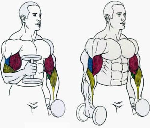 Атлет может привлечь к себе внимание всего лишь размером руки выглядывающей из под футболки. Сегодня я дам вам всего лишь 1 мою подсказку, которая поможет сделать ваши руки больше и не важно Атлет вы или нет. Так же большие руки придадут вам много уверенности в себе. Соответсвенно что бы этого достичь необходимо прорабатывать обе их части. И так, подготовьте перед собой 3 пары гантелей, например 13,16,18 кг( если вы не новичок, если новичок, берите вес поменьше.) перед тем как начать подумайте, какое из упражнений на бицепс ( молотки, перекрестные и т.д) кажутся для вас более сложными в выполнении. С этого упражнения и начинайте. Допустим вам тяжело даются молотки. Значит выполнение начнём с этого упражнения. Вам необходимо выполнить упражнение молотки с большим весом гантелей подготовленных вами ранее. Выполнить нужно 10 раз с большим весом гантелей. После того как выполнили 10 раз упражнение молотки. Выбираете следующее упражнение на бицепс и выполняете так же 10 раз, но уже с ме