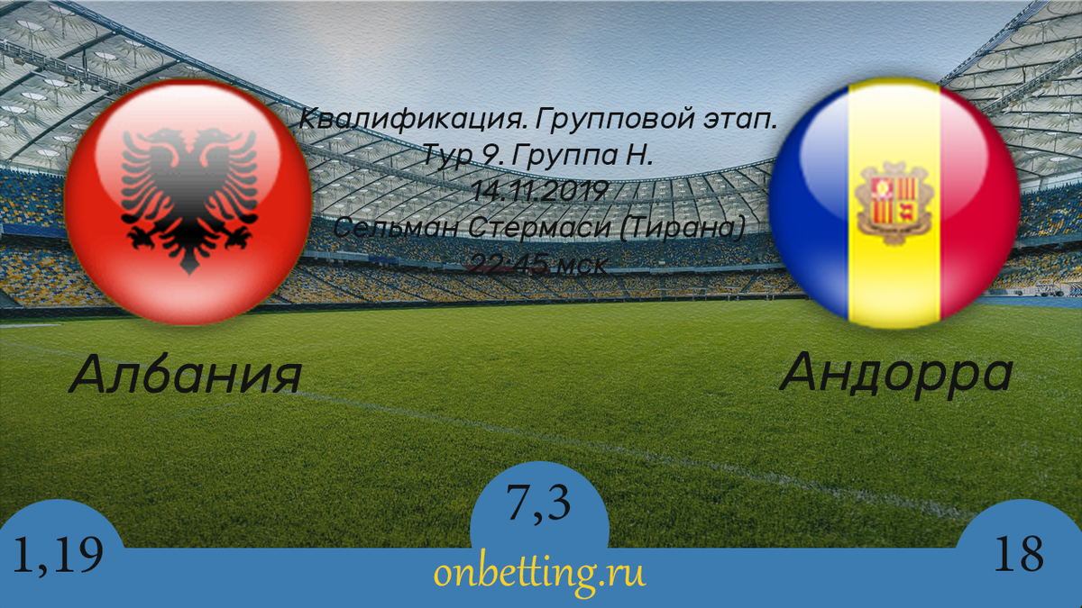 В четверг, в рамках квалификационного раунда Евро-2020 встретятся сборные Албании и Андорры. Фаворитом в этой встрече будут хозяева поля. Сборная Албании располагается на четвертом месте в своей группе с 12 очками и разницей забитых и пропущенных мячей 14:10. Команде не хватает стабильности и качественной игры в обороне. Сборная Андорры является преследователем Албанцев в группе, они на пятом месте с 3 очками и разницей мячей 1:16. Разбег между 4 и 5 местом огромен. Андорра все матчи, кроме одного, проиграла. Сборная Албании играет на домашней арене, да и соперник не особо прыткий, так что свои 3 очка Албанцы заберут, уверенной победой с разницей в 2-3 мяча.