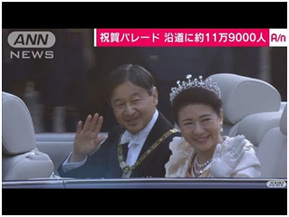 Поприветствовать Императора и его супругу на состоявшемся 10 ноября параде, который начался в 15 часов и длился около получаса, согласно подсчётам, пришло около 119 тысяч человек. Но это, видимо, только те люди, которые смогли пройти к маршруту следования парада через кордоны личного досмотра. Очень многим людям не удалось успеть преодолеть этот путь из-за мер безопасности…