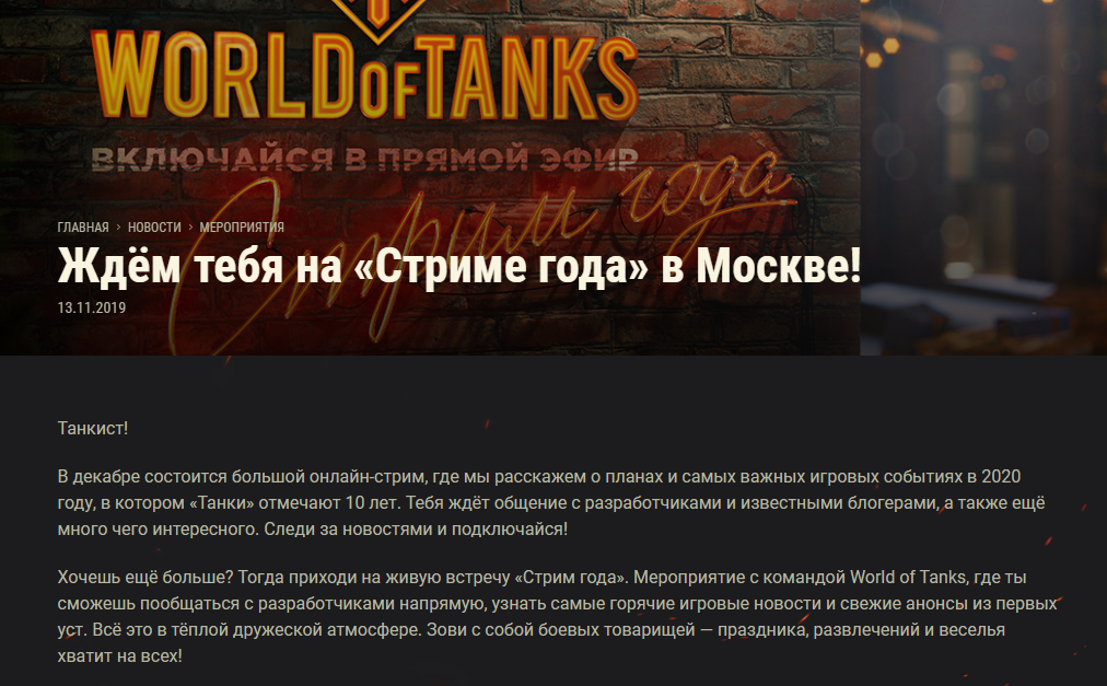 Добрый день. Ну чего то подобного я от Wargaming ожидал . Но не в таком же виде .Итак хочешь попасть на Стрим года ? будь добр выложи 3000 рублей ,как вам такое предложение? Ну и че спросите ВЫ че не так это же встреча -да и танчук дают в придачу! Ребята-я был на 6 ВСТРЕЧАХ С ВГ ! 2 раза на новогодних LETS PARTY в 15 и 16 годах ,и никогда ВГ не просило за это деньги -а наоборот ,всякие призы ништяки ,были для игроков бесплатны Что же получается -раньше когда ВГ только раскрутилось и денег было не так как сейчас ,они могли себе позволить ,относится к игрокам ,не с позиции дайте денег. А сейчас -а сейчас эффективные менеджеры компании решили что нужно ковать железо пока горячо ! и стрич бабосы. Только не понятно для чего -если теперь встречи с блогерами и разрабами ,платные . Куда катится этот прект. Очень жаль что компания WG в стремлении наживы ,пожирает сама себя . Ах да совсем забыл -танчук ? об 244 : анк «Объект 244» отличался установкой более мощного основного орудия. Боево
