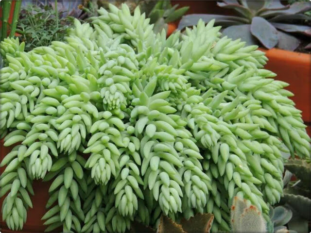 Действительно, сок седума сильнее алоэ по целебной силе. Он обладает противовоспалительным, ранозаживляющим и кровоостанавливающим действием. Его можно с успехом применять при ожогах, обморожениях и порезах. Листья очитков в старину использовали как болеутоляющее средство. Отсюда и название растения - sedo, в переводе с латинского означает "утихать". Седум Моргана, как и все суккуленты, любит солнечное расположение. Его длинные свисающие побеги особенно декоративны именно на солнце, в тени седум не погибнет, однако расстояние между листьями на стебле удлиняется, некоторые листья вообще опадают и седум теряет декоративность. Ожоги растению не страшны, от них он надеждно защищен специальным налетом. В отношении температурных условий седум неприхотлив, он с удовольствием проведет летнее время на лоджии до самой осени, однако крайне важно избегать сквозняков и холодного воздуха, иначе растение может потерять листья. Седум любит регулярный полив в период активного роста теплой мягкой водо