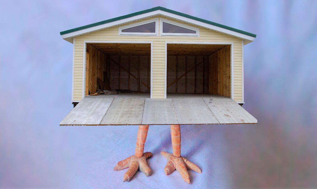 Как говорил наш общий друг Гамлет: быть или не быть? Вообще гараж на две машины на винтовых сваях — звучит несколько сомнительно, правда? Мне тоже раньше казалось, что под гараж ну только плиту и никак иначе. Но у хозяев участка было четко отведенное место под гараж и бонусом пластиковый погреб-банка, находящаяся на этой же территории и уже вкопанная в землю. Лента с полами по грунту, что называется, «не прошла по цене». А вот сваи на участке вполне подходили — на них построен основной дом. Благополучно стоит лет уже пять и не шатается.Ну ок, значит, винтовые сваи. Тем более что гараж планировался каркасный. Сваи взяли стандартные — 2,5 м, диаметр 108, 4 мм стенка. Оголовок 200. Расстояние между сваями сократили до 2 м максимум под машиноместа. Важно было еще не повредить погреб. Справились. Обвязка сделана из пакета досок 50х200. Лаги 200 мм, крепятся на опоры бруса. Расстояние между лагами не превышает 50 см (вместо стандартных 60 под утеплитель). Все параметры проверены в калькуля