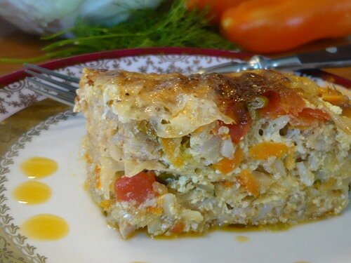 Все мы знаем что такое голубцы. Это очень вкусное блюдо. Но на его приготовление порой уходит уйма времени и сил. Также нам знакомы ленивые голубцы, которые последнее время стали очень ленивыми. Но тоже очень вкусно и полезно. А вот в новом своем образе, как любителя новой моды, ее представим в виде запеканки. Этот рецепт для тех, кто ценит свое время, но вместе с тем хочет питаться вкусно. Какие продукты нам понадобятся для приготовления этого простого, вкусного, и к тому же полезного блюда. Когда у нас все ингредиенты приготовлены, приступим к процессу приготовления: Нарезать лук кубиками. Морковь, перец, сельдерей нарезать соломкой. Пассеровать нарезанные овощи на растительном масле несколько минут.