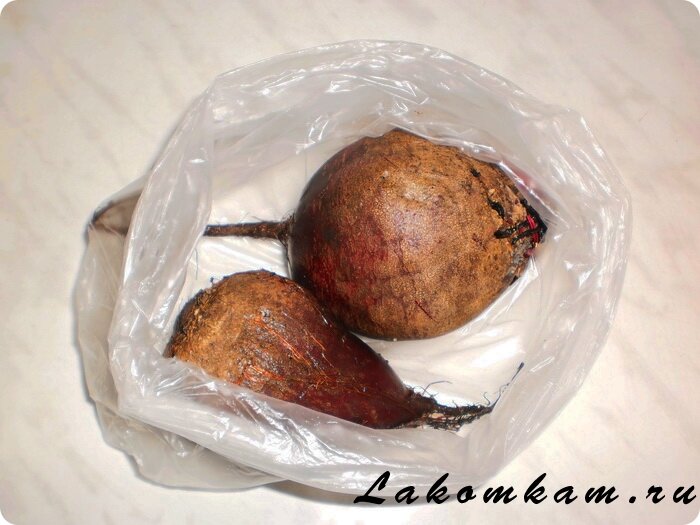 Приготовление свекольного чатни с черной смородиной. Начнём со свеклы. Моем, не очищая кладём в целлофановый пакет.