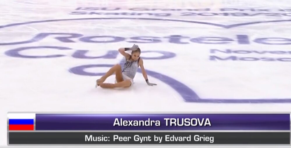 Интересное для меня в сегодняшнем соревновании началось с проката Екатерины Рябовой. Представительница Азербайджана получила невиданные ранее баллы, 64,01. Алексия Паганини, из Швейцарии, которой кстати сегодня исполнилось 18 лет, сделала себе подарок, откатав совершенно чисто. И получила, 65,12 баллов. Саша Трусова успела упасть до начала музыки своей короткой программы. Заставив меня сначала нервно смеяться, а потом попереживать, затаив дыхание. Она вышла первой во второй разминке под шквал оваций. Честно говоря, я даже через телевизор напряжение от такой активной поддержки почувствовал. Упала. Засмеялась. И кажется это нелепое падение помогло ей собраться. Позже она поделиться: "Осталось только на интервью упасть. Мне стало легче, когда я упала перед прокатом - все засмеялись, я засмеялась". Примета-то оказалась хорошая. Программу Трусова откатала чисто. Правда вместо заявленного каскада лутц-риттбергер 3-3 выполнила тройные лутц-тулуп 3-3. Вот что значит, уметь быстро сориенти