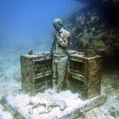 Пара других скульптур, которые действительно поражают воображение, - это миниатюрный дом с работающим дымоходом. Туристы говорят, что можно вставить свой регулятор под дымоход и выпустить несколько пузырьков, это выглядит как дым, выходящий из верхней части. Один арт-объект напоминает бизнесменов в костюмах, погружённых головой в песок. Это должно символизировать жадность капиталистов, что довольно иронично, поскольку MUSA не самое дешевое место для дайвинга.