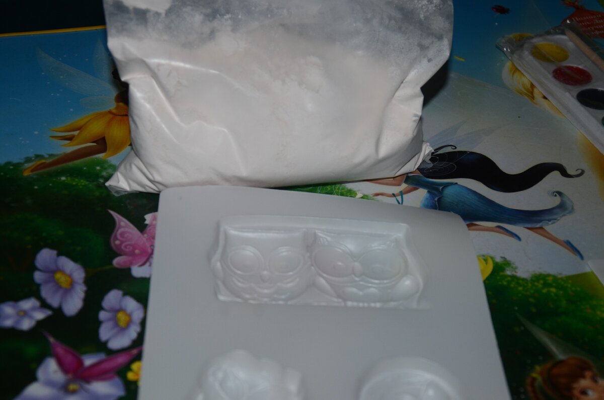Гипс можно купить в любом магазине для творчества. Есть даже готовые наборы с формочками. Мы взяли набор, в который входил гипс и формочки в виде птиц. Решили использовать именно такую тематику.