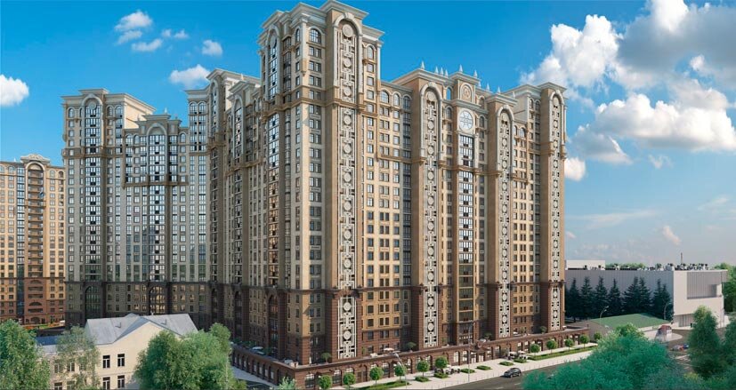 Действительно, первым делом бросаются в глаза лепнины и арочные окна, на которые богаты фасады комплекса. ЖК бизнес-класса "Династия" представлен тремя корпусами высотой 21-24 этажа. Среди квартир вы найдёте минимальную площадь 40 кв. м, максимальная достигает 103 кв. м. Понятное дело, на старте продаж они продаются по самой привлекательной стоимости от 11,2 млн руб. Максимальный ценник - 33 млн руб.
