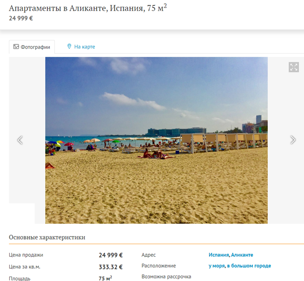 Из объявления, если читать его буквально, можно понять, что при покупке указанного объекта предоставляется вид на жительство (ВНЖ). Если это не некомпетентность (что вряд ли), то введение клиента в заблуждение. По испанским законам ВНЖ при покупке недвижимости не предоставляется автоматически. Тем более, для собственников, которые приобрели объект стоимостью 173 тыс.евро, т.к. по категории «инвесторов» проходят только лица, которые приобрели объект недвижимости стоимостью от 0,5 млн.евро и выше (плюс 10% налог «сверху»).