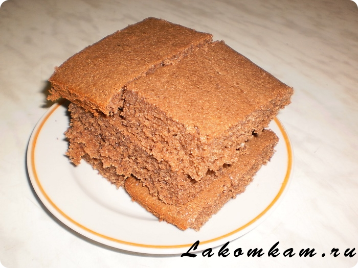Ингредиенты: сметана — 1 стакан; сахар — 1 стакан; манная крупа — 1 стакан; куриные яйца — 3 штуки; сода — 0,5 чайной ложки; какао — 2 столовые ложки.