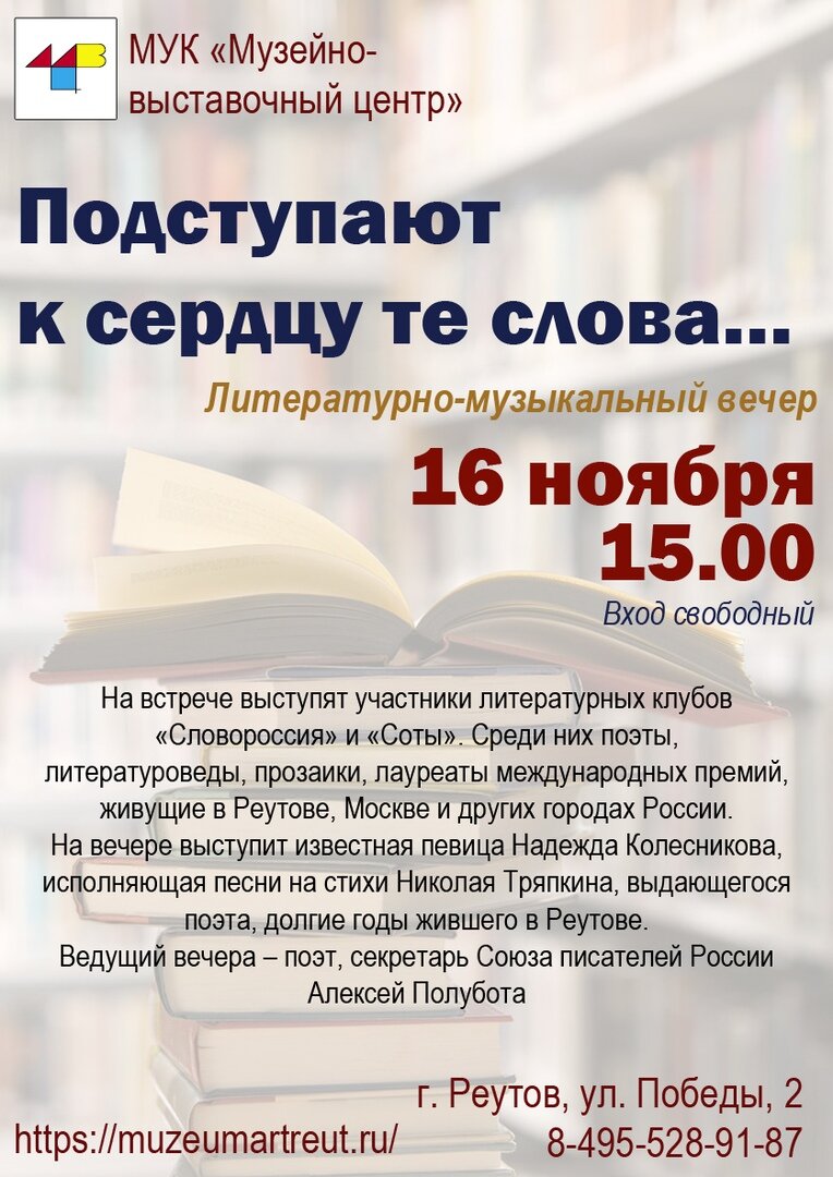 Литературный вечер в МУК "Музейно-выставочном центре" Реутово