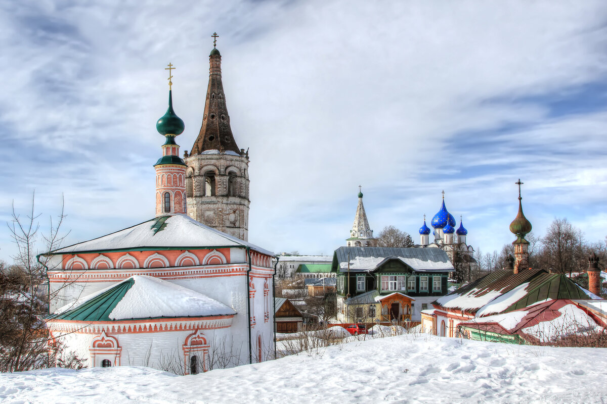Предстоящая зима уже очень скоро изменит виды вокруг нас до неузнаваемости и сделает прекраснее любой город, даже если обычно он кажется вам совсем серым и ничем не примечательным. Давайте прогуляемся по самым красивым зимним город России и узнаем, куда же обязательно стоит поехать этой зимой! Белое на белом. Белокаменный Суздаль в белом снегу. Этот город за свою историю пережил 1016 зим. Суздалю царственность придают двести памятников архитектуры. На улицах и сейчас конные повозки встречаются наравне с автомобилями. Дух древнего города сохраняют из столетия в столетие, что признало ЮНЕСКО, включив Суздаль в Список всемирного наследия. Дополняет собирательный образ белокаменной Руси Владимир. Памятники, разменявшие свою первую тысячу лет, столетняя водонапорная башня, что больше напоминает часть стены старой крепости, памятник князю Владимиру Красное Солнышко. Полная архитектурная гармония. Город, покрытый белым снегом, будто застыл в веках. Город на полуострове. Выборг зимой замерзае