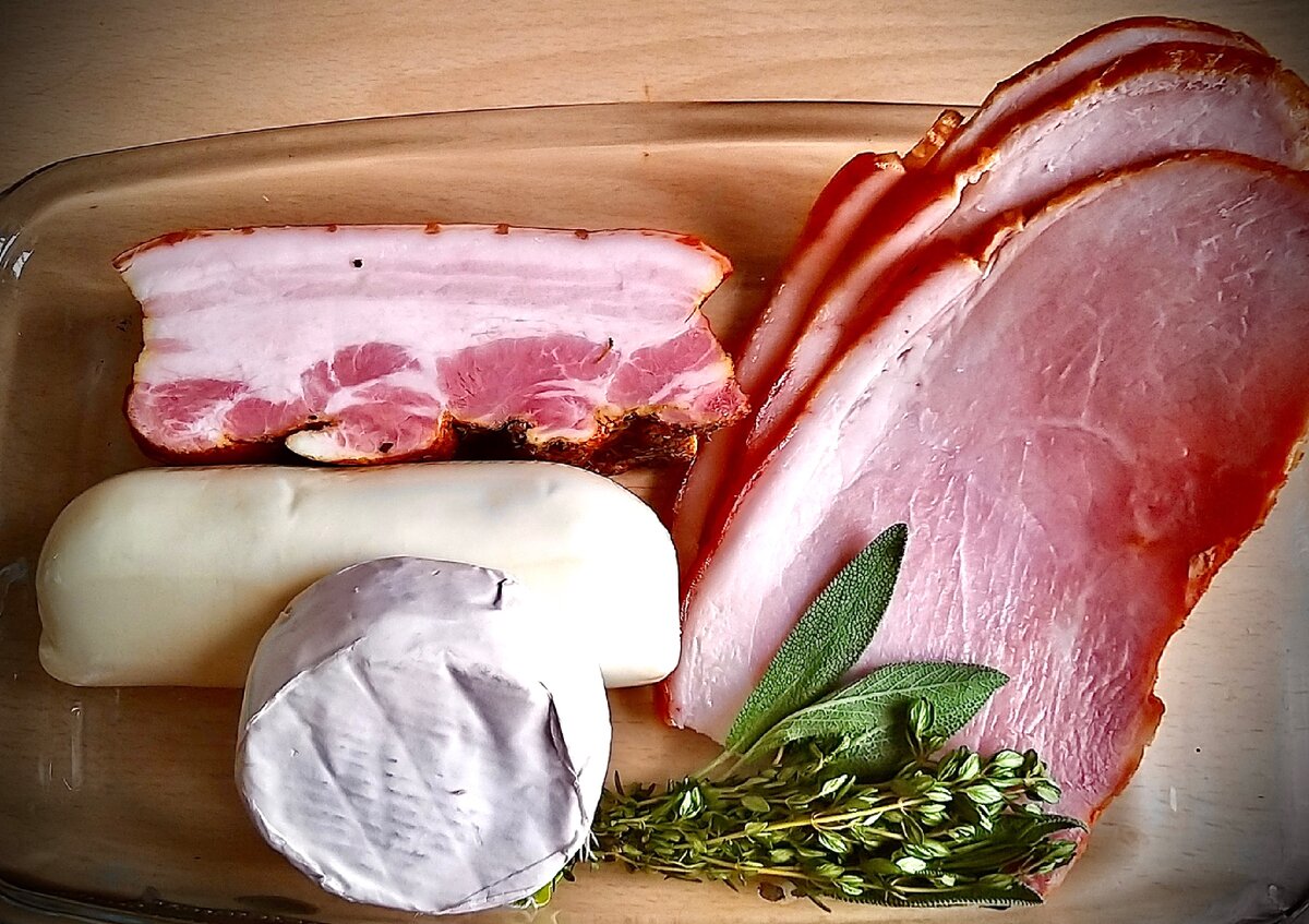 Я видела в интернете даже Раклет по Австралийски! За московскими окнами практически Альпийская зима, поэтому предлагаю приготовить это блюдо по моему собственному рецепту и из тех продуктов, которые я купила в ближайших магазинах. Традиционно, это блюдо из ветчины, вяленого мяса, сыра и картошки. Но в моей семье следят за фигурой и здоровьем, поэтому часть картошки, я легко заменяю на другие овощи. Я взяла цветную капусту, морковь, тыкву, шампиньоны и совсем немного картошки. Овощи отвариваем, чуть-чуть не доварив до полной готовности. Грибочки я слегка обжарила. Раскладываем овощи на блюде. Сверху раскладываем мясные деликатесы. Сыр камамбер разрезаем вдоль и кладём коркой вверх. Во Франции Камамбер раза в четыре больше и покрывает все блюдо, поэтому я решила добавить ещё моцареллу. Сыра должно быть много