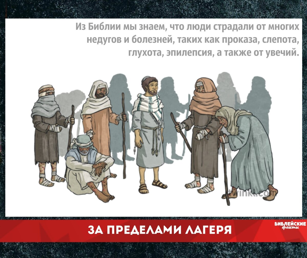 Из Библии мы знаем, что люди страдали от многих недугов и болезней, таких как проказа, слепота, глухота, эпилепсия, а также от увечий (Мк. 1:32-34). Многие евреи считали, что болезнь является следствием греха. Если кто-нибудь заболевал, они спрашивали: "Кто согрешил, он или родители его?" (Ин. 9:2). Иудеи в древнем Израиле испытывали страх перед проказой. В библейские времена была распространена одна из форм этой страшной болезни, которая наносила непоправимый вред здоровью, поражала нервные окончания и обезображивала человека. В то время проказа не поддавалась лечению. Поэтому больные должны были жить отдельно от других людей и предупреждать окружающих о своем заболевании (Левит 13:45, 46). В Священном Писании говорилось, что прокаженные должны были жить «за пределами лагеря». Известно, что некоторые, если видели в городе больного проказой, начинали кидать в него камни, говоря: «Убирайся отсюда! Не оскверняй нас своим присутствием!» Иисус же вел себя совершенно иначе! Вместо того что