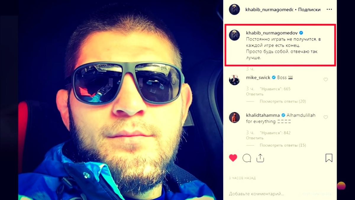 Непобежденный чемпион UFC в легком весе Хабиб Нурмагомедов намекнул фанатам в своем инстаграмм о завершении карьеры.. Ранее отец Хабиба неоднократно говорил что еще один бой и хватит с нас,и все в этом духе. Так же он упомянул что готовит замену Хабибу, и в его зале есть много достойных бойцов , Которые могут занять пьедестал после завершения карьеры Хабиба. Кто знает,вдруг и на самом деле После боя с Фергюссоном ,Нурмагомедов решит закончить карьеру. Тем более что в своих социальный сетях Хабиб непрозрачно намекнул: Что постоянно не получится играть,и конец есть в каждой игре,нужно быть собой. Как вы думаете,что имеет ввиду Хабиб? И закончит ли он карьеру после боя с Тони Фергюссоном, поделитесь своим мнением в комментариях Подпишитесь на канал и поставьте лайк,это мотивирует писать чаще