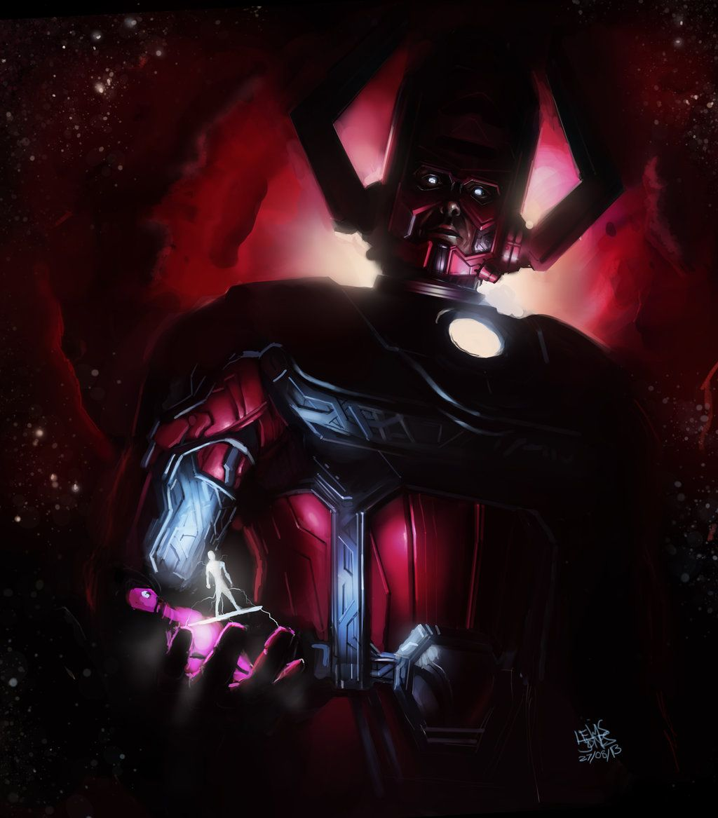 Галактус, Пожиратель Миров (Galactus, Devourer of Worlds) – неотъемлемая часть вселенной Marvel (причём буквально, как выяснилось в одном из комиксов), пришелец с практически божественной силой и неутолимым голодом. Он впервые появился в 1966 году в комиксе про Фантастическую Четвёрку. Жил да был такой себе Галан на планете Таа. Довольно давно — ещё до Большого Взрыва. И жил бы дальше, да вселенная начала погибать, сживаться. Галан с ещё несколькими согражданами сел в звездолёт и отправился к центру сжимающейся Вселенной. Там все сограждане погибли, а Галан вошёл в контакт с космической сущностью, Вечностью, и выжил, превратившись в существо божественной мощи. Несколько миллиардов лет Галактус пролежал в спячке, проснулся голодным и отправился поглощать планеты. И заодно соорудил целую искусственную планету Таа II в память о погибшей вселенной. Задолго до визита на Землю Галактус был вынужден участвовать в гражданской войне богов. Его врагом был Диаблери, бог хаоса. Галактус уничтожи