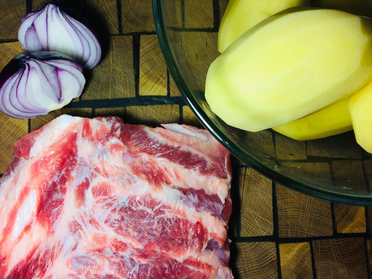 Доброе утро, или день, или вечер, дамы и господа :) Как вы уже успели заметить, я люблю готовить экспресс блюда. Затраченного времени минимум, вкусноты блюд - максимум. Всегда в запасе должны быть несколько быстрых в приготовлении блюд. Одним из таких хочу сегодня с Вами поделиться. Чтобы такое блюдо приготовить, не нужно быть шеф поваром, или уметь шикарно готовить, с рецептом справится даже ребенок. А высокий уровень сытости гарантирован. Такое #блюдо подойдет и на каждый день, и беспроигрышно впишется в праздничное #меню Начнем подготовку продуктов. 1. Моем, чистим. нарезаем крупными кусочками картофель. 2. Свиные #ребрышки моем и разрезаем вдоль по хрящикам, косточкам. 3. Чистим, режем луковицу крупно. (Я взяла фиолетовый лук) 4. Все смешиваем укладываем в пакет для запекания. 5. Насыпаем соль, перец по вкусу, и для того чтобы ребра были более ароматными я добавляю любимую приправу. У меня "Пряный маринад с кофе" от "KOTANYI". 6. Закрываем пакет и хорошенько перемешиваем. 7. Кла