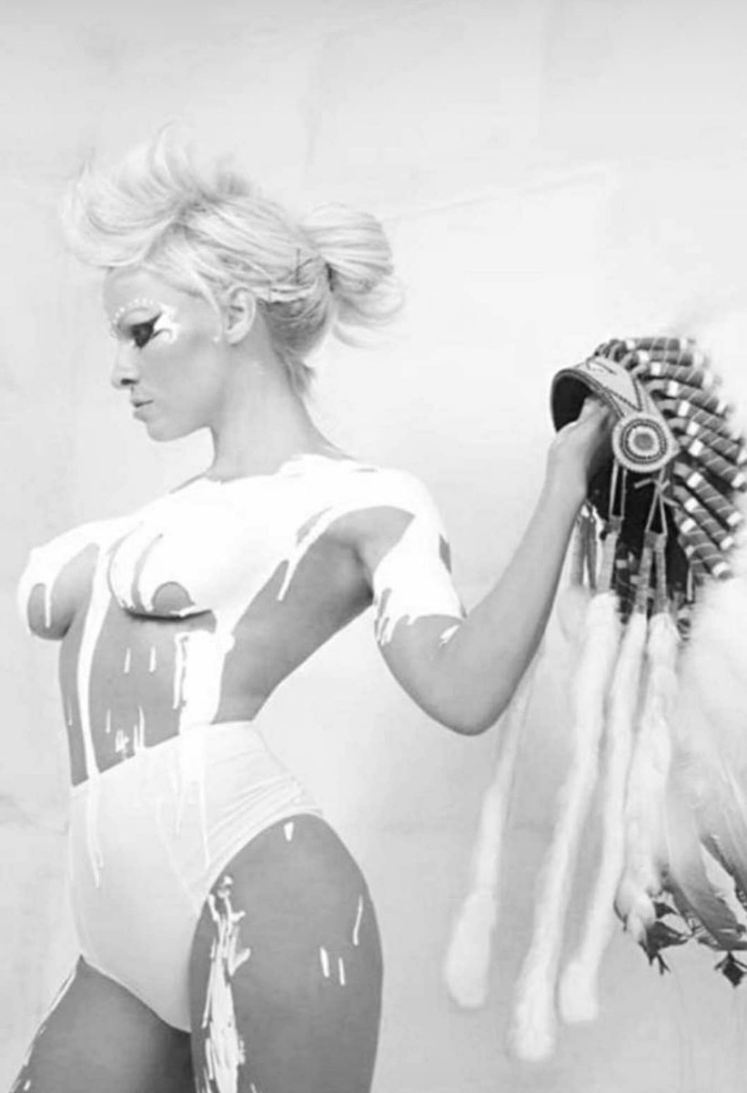 В пятницу первого ноября Памела выложила в твиттере две фотографии, на которых она запечатлена в очень откровенном и спорном образе — топлес и в традиционном индейском головном уборе из перьев. «Счастливого Хэллоуина», — подписала она публикацию.