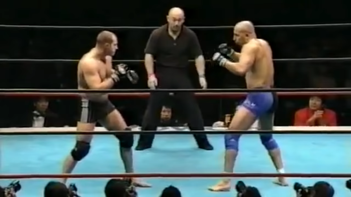 Федор еще в расцвете своей карьеры. Старый бой. Емельяненко не любит драться стоя. У него разговор, короткий помахал руками и захватом повалил на земь противника. Обмен ударами на земле был не особо активен. Почему-то Федору захотелось встать и этого бык просто так оставить не мог. Федор был схвачен за ноги и теперь бык был над Федром, а не наоборот. Он даже придавил рукой Федора, но всего лишь на несколько секунд. Федор быстро встал и амбал ему даже не смог помешать, хоть и пытался попасть коленом. Хороший одиночный от Федора и соперник опять на земле. Он пытается сделать болевой руки, но Бык не желает ее отдавать и переворачивается. После Федор ищет более удобную позицию перемещаясь вокруг амбала. Он опять хватает за руку вроде получается сделать болевой, но видимо не по правилам потому, что судья их сразу разнял. Вот уже и в третий раз соперник оказывается на полу благодаря Федору. Потом он даже прижал соперника к канатам и стал бить по лицу, но судья его быстро