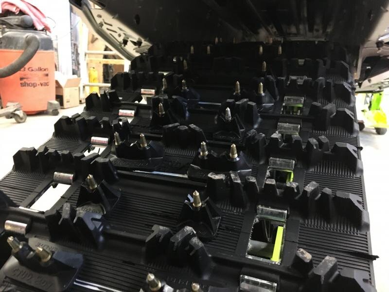 Снегоходная гусеница в отличие от автомобильных шин имеет шипы с гораздо большим вылетом. Ведь в отличие автомобильных дорог у снегоходных трасс нет асфальтового покрытия, которое следует беречь. Шипы снегохода установлены гораздо жестче автомобильных. Это позволяет устанавливать шипы с большим вылетом. Покрышкам шипы помогают при работе на скользких участках с открытым льдом и плотным укатанным снегом. Снегоход передвигается по глубокому рыхлому снегу и оказывается очень редко в подобных условиях. Однако есть определенные виды эксплуатации снегоходов, при которых наличие шипов обеспечивает выдающие эксплуатационные характеристики. А именно: 1. Зацеп в продольном и поперечном направлении. Это очень важно для кроссовых снегоходов. Без хорошего зацепа на укатанных трассах невозможна реализация всей мощности двигателя. Более того важно не только ускорение, но и динамика торможения. За счет хороших тормозов можно получить огромное преимущество на трассах с большим количеством поворот