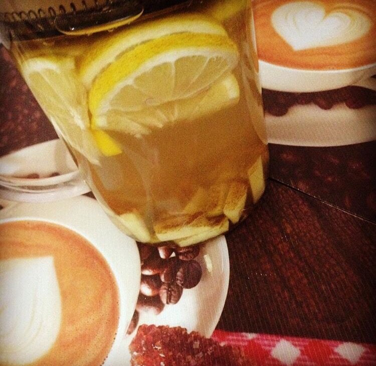 Ингредиенты: Приготовление: 1. Имбирь очистить от кожицы и нарезать на брусочки. 2. Лимон помыть и обдать горячей водой. 3. Нарезаем лимон полукольцами. 4. Вскипятить воду. 5. Теперь все ингредиенты смешиваем и заливаем кипятком, накрываем крышкой. 6. Даём настояться минут 15 и пьём. Приятного аппетита!