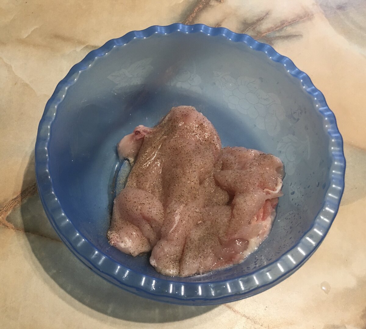 После того, как ребёнок перешёл с каш пюре на цельные каши, у меня осталось несколько неиспользованных упаковок. Находим им применение. Сегодня я попробую приготовить куриное филе в панировке из детской каши. Для начала замариную филе. Для этого тщательно промоем и очистим от пленочек. Далее требуется посолить, слегка поперчить. Также добавляю специи «итальянские травы» вместо них можно использовать «прованские травы». Мясо с ними начинает играть утонченными нотками. Затем нальём немного соевого соуса и оставим мариноваться. Куриной вырезке нужно хорошо пропитаться, поэтому стоять ей так от часу. После того как филе пропиталось соками. Насыпаем в плоскую тарелку детскую кашу, в глубокую разбиваем яйца и тщательно их перемешиваем и чуть-чуть солим. Нарезаем филе на кусочки. Обмакиваем филе сначала в яичной тарелке, потом в тарелке с кашей. Можно это действие делать дважды, тогда корочка будет толще, а филе сочнее. Затем кладём на разогретую сковороду с подсолнечным маслом и жа