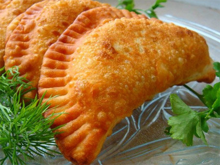 Чебуреки получаются одновременно хрустящими за счёт вкусного теста, и сочными благодаря фаршу . Ингредиенты: Тесто: Фарш: Для обжарки: Способ приготовления: 2. Влейте кипяток в муку, перемешайте. Тесто будет комками, они потом разойдутся. Добавьте водку. 3. Выкладываем полученную массу на стол. 4. Месите тесто на столе до гладкого состояния примерно 7 минут. 5. Отправьте тесто в миску, смажьте немного маслом, накройте пищевой пленкой, чтобы не обветрилось, и оставьте на 30 мин. 6. Добавьте к фаршу измельченный лук, соль, кориандр и черный молотый перец. Перемешайте . И понемногу вливайте воду. 7. Фарш должен стать кашеобразным. Накройте пищевой пленкой и поставьте на 30 мин в холодильник. 8. Сформируйте из теста "колбасу" и разделите на 12 частей. 9. Одну часть теста раскатайте до толщины 1 мм, но не до прозрачности. Если тесто прилипает к поверхности, присыпьте мукой. Выложите на половину лепешки тонкий слой фарша. 10. Зак