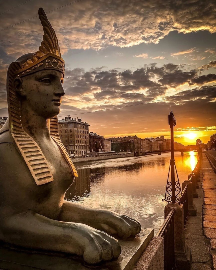 6 сентября 1826 года в Петербурге на Фонтанке открыли первый Египетский мост. Это величественное сооружение в необычном стиле просуществовало меньше 80 лет, а происшествие, случившееся с ним, теперь изучают на уроках физики. Первый висячий Египетский мост длиной в 47 метров был построен инженерами В. фон Треттером и В. А. Христиановичем в 1826 году. В XIX веке в Петербурге искусство Древнего Египта было в моде, именно этим объясняются архитектурное решение и название моста. Порталы с позолоченным орнаментом, колонны, карниз с изображением бога Ра в виде крылатого солнца и другие части моста были украшены орнаментами из иероглифов. Охраняли сооружение четыре скульптуры сфинксов. Именно мифические существа — единственное, что осталось от первого моста. 20 января (2 февраля) 1905 года по мосту проходил эскадрон гвардейской кавалерии. Навстречу, по свидетельствам очевидцев, ехали 11 саней с возницами. Конструкция не выдержала — и мост рухнул. По легенде, в этот момент местная жительница кр