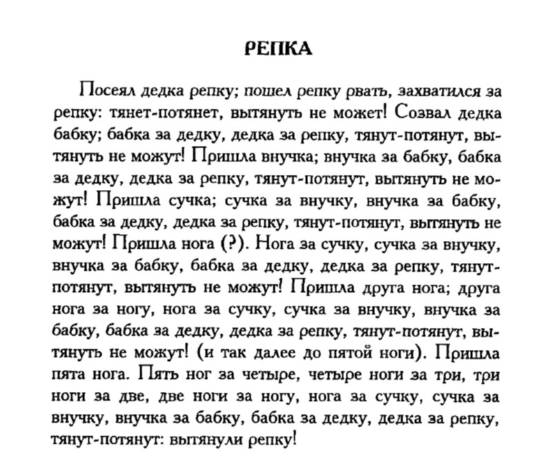 Знакомая нам «Репка» — это вариант в обработке педагога К. Ушинского. А вот как выглядит сказка в книге Афанасьева "Народные русские сказки". Начинается сказка как обычно. Здесь мы встречаем и деда, и бабку, и внучку, и даже собаку, дружно пытающихся вытянуть репку. Внезапно появляется нога, затем — вторая, и так далее до пятой. Чтобы это всё могло значить? Собака Собака — первый друг и помощник человека. Она же охранник. Традиционно собака является стражем на границе миров, символически связана с женским началом и землёй. Ноги Ноги служат нам точкой опоры, они имеют непосредственный контакт с землёй. Распространены представления о передаче через соприкасающиеся с землёй ноги земной силы. В сказке каждая нога является отдельным существом. Всего их пять. Пятёрка символизирует физическую целостность и материальный мир. Волшебная сила Земли Теперь мы видим, что собака и ноги легко вписыв