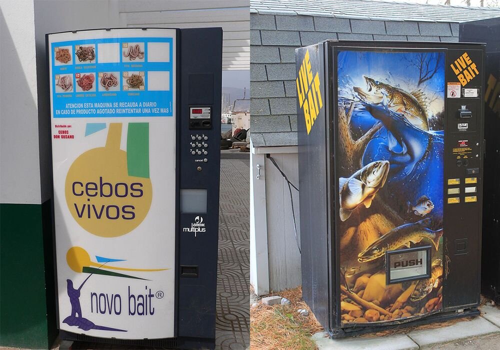 (Кто пропустил: Температура воды, при которой клюёт судак) Вендинг шагает по миру. Добрались и до рыбаков. Мы давно привыкли к автоматам, которые торгуют лимонадом или шоколадками. Но мало кто знает, что таким же образом - можно покупать наживку для рыбалки. Такие автоматы давно работают в США. И рыбаки охотно покупают червей или живцов - в этих вендинговых автоматах. Их общее название "Live Bait". В конце статьи - небольшое видео об этом. Причём, в отличии от первых образцов - в которых наживка хранилась недолго, появились современные, более продуманные аппараты. В них, для каждого вида наживки - поддерживается оптимальная температура и влажность. Автоматически перемешиваются и сортируются черви, опарыш, мотыль. Живец - всегда в бодром и весёлом состоянии. До продажи - они автоматически получают корм и подогрев или охлаждение. В нашей стране такие аппараты начали появляться лет 5 назад. Но самые первые, примитивные автоматы не могли гарантировать сохранность наживки в достойном с