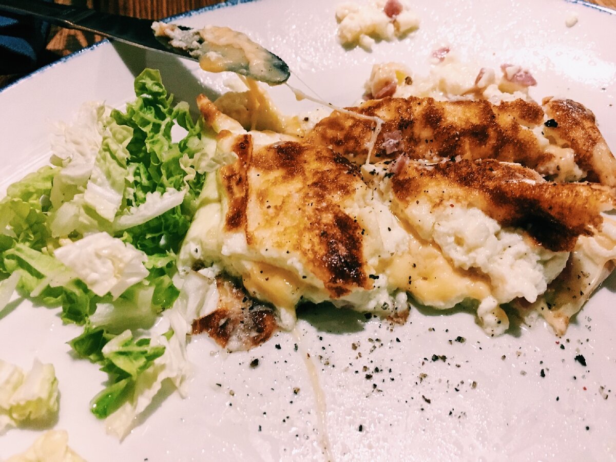 Сегодня мы с коллегой обедаем в кафе. Мы заказали салат и омлет с ветчиной и сыром. Из напитков у нас сок мультифруктовый. К салату претензий нет, неплохой за свою цену. Да и рецепт простой, можно готовить дома. Омлет порадовал меньше. Он получился просто огромный. Дело в том, что он невероятно мягкий, жидкий. Может, слишком много молока? И во всей этой кашице мелькает ветчина и тянется сыр. Есть это возможно только с хлебом, перцем и солью. Настолько это противно ощущается во рту. Но это был эксперимент, так что будем считать его провальным. Зато повод приготовить дома! Намешать всё по своему вкусу и запечь на сковородке. Надеюсь, у меня хвалит вдохновения и желания продолжать заниматься кулинарией.