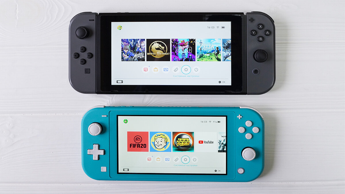Отличия и преимущества перед Nintendo Switch Давайте разбираться, что такое Nintendo Switch Lite, почему он стоит дешевле, чем Nintendo Switch и в чём разница. Итак, Nintendo Switch Lite - это портативная консоль в монолитном корпусе с эксклюзивными играми созданными специально для консолей Nintendo Switch. Также присутствуют некоторые популярные игры, портированные с других платформ, например, Mortal Kombat 11, Assassin’s Creed III: Remastered. Lite-версия была создана специально для тех, кто не пользуется определёнными функциями и не хочет за них переплачивать. Чем Nintendo Switch Lite отличается от Nintendo Switch? 1. Меньше размер в целом, и эркан, в частности. 2. Монолитный корпус, джойконы несъёмные. 3. Нет акселерометра, инфракрасной камеры и вибраций. 4. Нет автоматической регулировки яркости. 5. Нет встроенной подставки. 6. Нет док-станции и нельзя подключить к телевизору. 7. Нельзя играть вдвоём на одной консоли без дополнительных джойконов. 8. Не поддерживает картонный кон