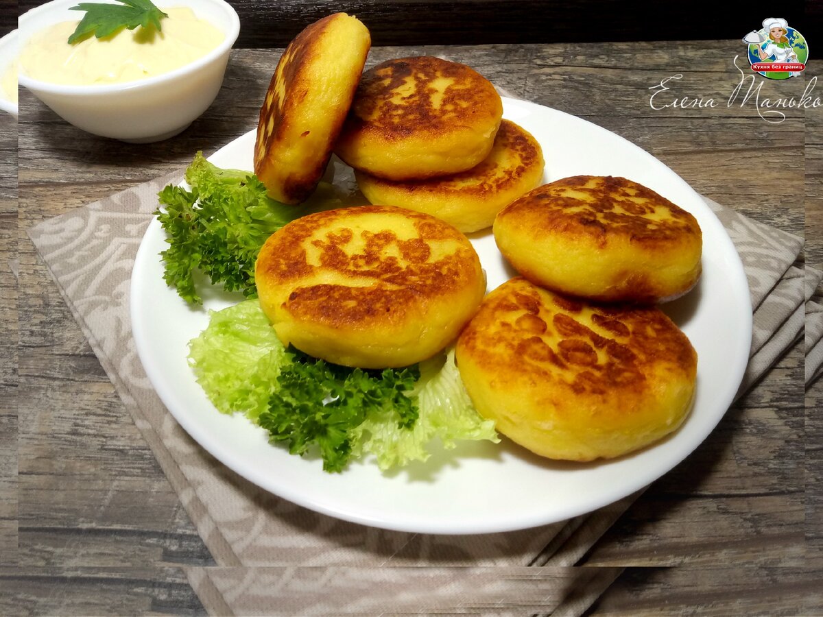 Если вы спросите: что это за чудо-юдо такое, — я вам честно признаюсь, что в кулинарных книгах такого блюда, конечно же, нет 😊. Это блюдо наше семейное и оно меня очень выручает, когда нет времени приготовить мясо. Накормить мужиков без мяса — дело практически безнадежное. Во всяком случае с моими такие номера не проходят: уже через час начинают бродить вокруг холодильника, пытаясь найти, что бы еще пожевать. Но вот "ляп-тяпами" мои мальчишки всегда наедаются и оттянуть их от них можно только за уши. Название этим вкуснющим картофельным плюшкам придумал сын, когда увидел как быстро они готовятся . Так и сказал: «ЛЯП-ТЯП — и готово! Мама ЛЯП-ТЯПЫ готовит!» Хотите проверить? присоединяйтесь! обжариваю с каждой стороны до румяной корочки. Готовые выкладываю на бумажное полотенце, чтобы убрать лишнее масло. Подаю со сметаной. Пробуйте на здоровье! Я буду очень рада, если вам понравится! Оцените, по