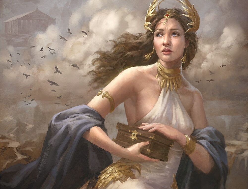 Согласно легенде, Пандора была первой смертной женщиной, чьё выдающееся любопытство привело в движение потрясшие Землю события. Гефест, бог огня, вдохнул жизнь в Пандору, использовав помощь своих божественных спутников, чтобы сделать ее исключительной. От Афродиты она получила способность выражать эмоции, от Гермеса ей досталось совершенство во владение языками. Афина преподнесла дар идеального мастерства и внимания к деталям, а Гермес наградил ее именем. Наконец, Зевс вручил два подарка Пандоре. Первый - черта характера - любопытство, которая укоренилась в ее душе и заставила исследовать мир. Второй - тяжелый ящик резной работы, громоздкий и надёжно закрытый. Но содержимое, наказал Зевс, было не для глаз смертных. Она не должна была открывать ящик ни при каких обстоятельствах. На Земле, Пандора встретила и влюбилась в Эпиметея, талантливого титана, которому Зевсом было поручено создание модели мира. Он работал плечом к плечу с братом, Прометеем, создавшим первых людей, но был наказа