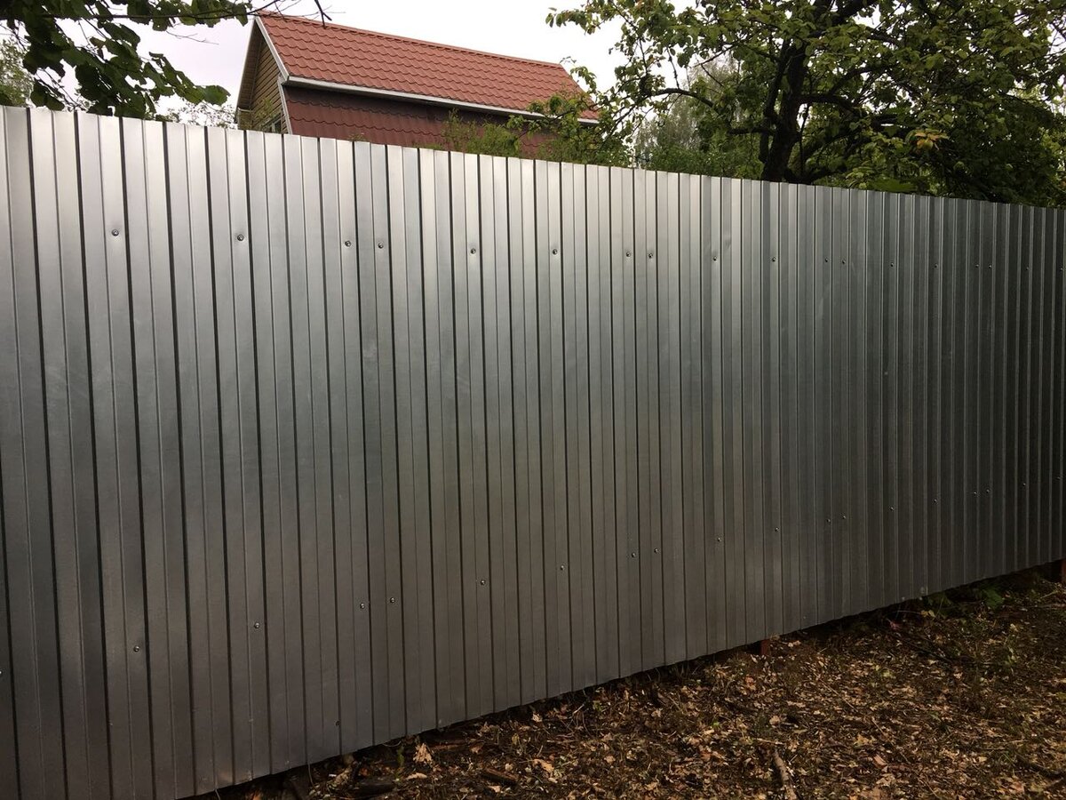 Какой должен быть максимально дешевый, но при этом надежный забор из профнастила. Профлист является наиболее распространенным и доступным вариантом ограждения дачного участка. Ассортимент листов различных марок, их параметров и цветов позволяет персонально подобрать ограждение под ключ. От самого дешевого оцинкованного варианта до дорогого с двухсторонним полимерным покрытием под дерево или камень. Сегодня мы рассмотрим наиболее дешевые, но не менее надежный вариант ограждения. Материалы И сразу к делу. Рассмотрим комплектацию, которая необходима для возведения полноценного ограждения под ключ. Профлист - наиболее дешевая и практичная марка С8 с нанесённым на все поверхности гальваническим цинковым покрытием и толщиной листа по выбору 0,3; 0,4 или 0,5мм. (0,3 не устанавливаем и вам не рекомендуем покупать, но такой дешевый вариант существует на рынке). Столбы - для забора из профлиста оптимальны профильные трубы размером 60х60 (возможен вариант 60х40 для невысокого забора) толщиной