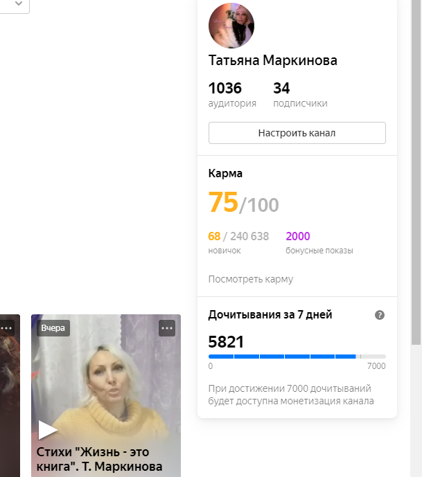 Здравствуйте, мои дорогие подписчики и читатели. Сразу хочу поблагодарить вас за внимание к моему каналу, за теплые отзывы и «пальчики вверх». Очень рада, что Вам интересно то, что я пишу. Ранее в одной из статей, посвященной созданию этого канала на Яндекс.Дзене, я говорила, что открыла канал 20 октября в воскресенье. И писала о своих недельных успехах. Сейчас я хочу рассказать о том, как дела обстоят сегодня (спустя две недели от даты создания моего канала). Он у меня не тематический. Я хотела сначала писать только на одну тему, но это для меня сложно, потому что мне интересно и то, и это. Первые дни я писала по три-четыре статьи, но это не давало мне тех просмотров и прочтений, каких хотелось бы. В итоге я стала писать одну-две статьи, иногда нарратив. Прочтений стало больше. Я пришла к выводу, что писать по несколько статей в день, не нужно. Лучше одну–две, но большие. Количество подписчиков тоже выросло. Спасибо вам за то, что вы у меня есть!!! Не знаю, повлияло ли это на рост