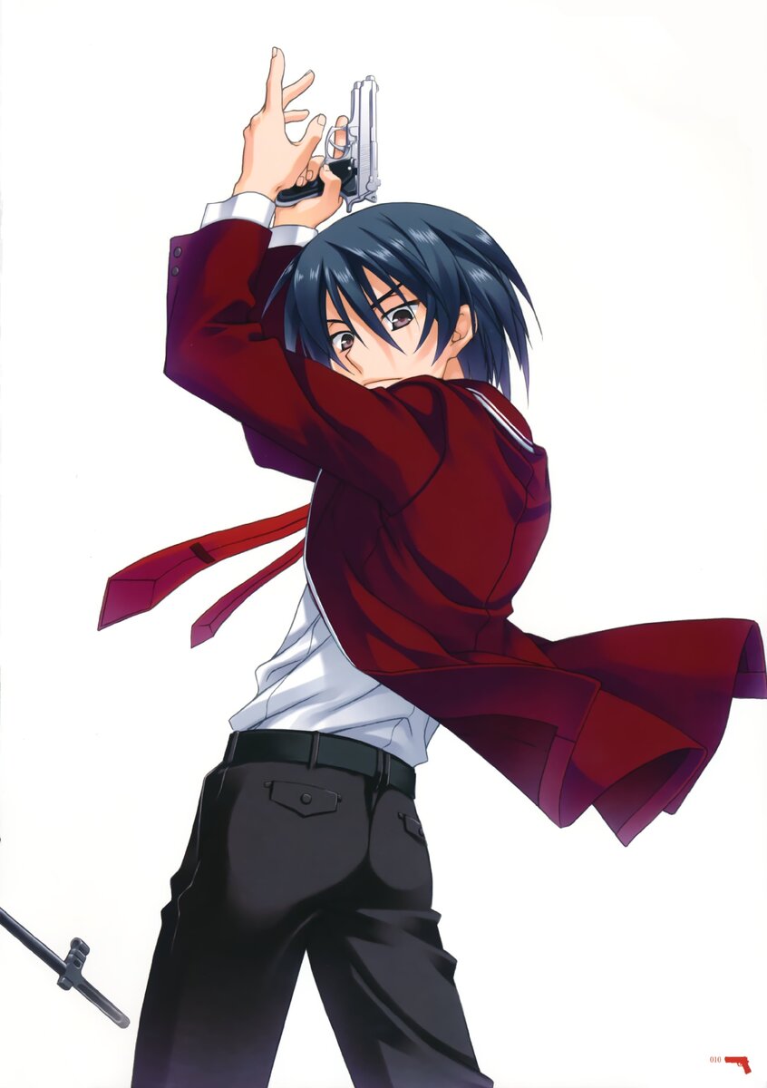 Да , да , да , это продолжение ....... 1 - Кинджи Тояма Аниме - Ария Алая Пуля Токийская Высшая Школа Бутэй - специальное учебное заведение, где проходят обучения вооруженные детективы , где учится и наш главный герой Тоояма Кинджи - ученик второго курса, особо ничем не примечателен , до тех пор пока не переходит в режим Истерии, в котором усиливается его психологическая устойчивость, манера речи, а так же физические способности. Если вы не смотрели аниме и не можете понять , почему персонаж входит в данную статью . В истерии Тоояма способен рассчитать момент и траекторию пули , что кстати и помогло ему в конце одолеть главного злодея . (Это нельзя объяснить , это нужно увидеть) 2 - Вэш Ураган Главный герой аниме Триган . Вэш носит Кольт 45-го калибра из серебра, классический шестизарядный револьвер двойного действия. Пистолет был создан в двух экземплярах, из которых Вэш получил серебряную модель, а Найвз держал чёрную модель. Помимо револьвера, Вэш имеет кибернетическ