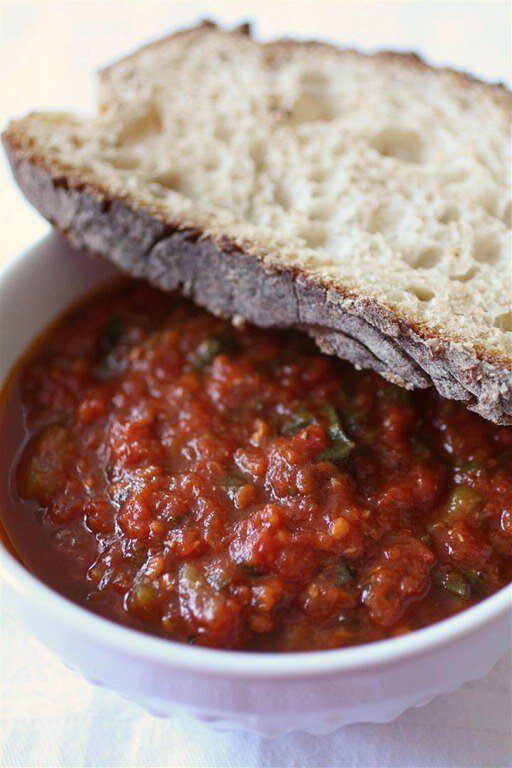 Ингредиенты: Шаг 1. Залейте помидоры кипятком на 5 минут, затем остудите их в холодной воде и снимите кожицу. После этого порежьте крупными кубиками. Шаг 2. Пропустите чеснок через давилку и добавьте к помидорам. Шаг 3. Почистите перец чили от семян, порежьте и добавьте к полученной смеси вместе с оливковым маслом и зеленью. Шаг 4. После этого соус доводите на небольшом огне до кипения, добавляете соль по вкусу, лимонный сок и готовите еще 20-25 минут, непрерывно помешивая. Шаг 5. После остывания соус готов к употреблению. Приятного аппетита!