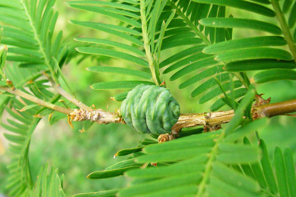 Вот кому действительно всё нипочём! До последнего времени это ископаемое растение считалось потерянным. Эта древность, когда-то царствовавшая на земле, пережила динозавров, не один ледниковый период, засухи и прочие катаклизмы. Метасеквойа – это реликтовый хвойник с широкой, пирамидальной формы кроной, которая порой опускается до самой земли. И не бойтесь мрачных теней – она светлая, очень-очень мягкая, осенью золотистая, розовая, или бывает огненного-рыжая с бронзовыми оттенками. А уж посаженное рядом с водоёмом, просто сказка! Высотой это дерево до 40м, а живёт больше 600 лет. Уникально ещё и тем, что за последние 50 млн лет этот реликт совсем не изменился. Во всяком случае, так утверждают генетики. Растёт быстро – может давать до 1м ежегодного прироста, а ствол мощный, прочный, будто свитый из канатов, может достигать ширины 2,5м с корой красноватого оттенка. Оригинальна форма расположения ветвей, для хвойных деревьев не совсем свойственная. И ещё одно отличие от игольчатых собра