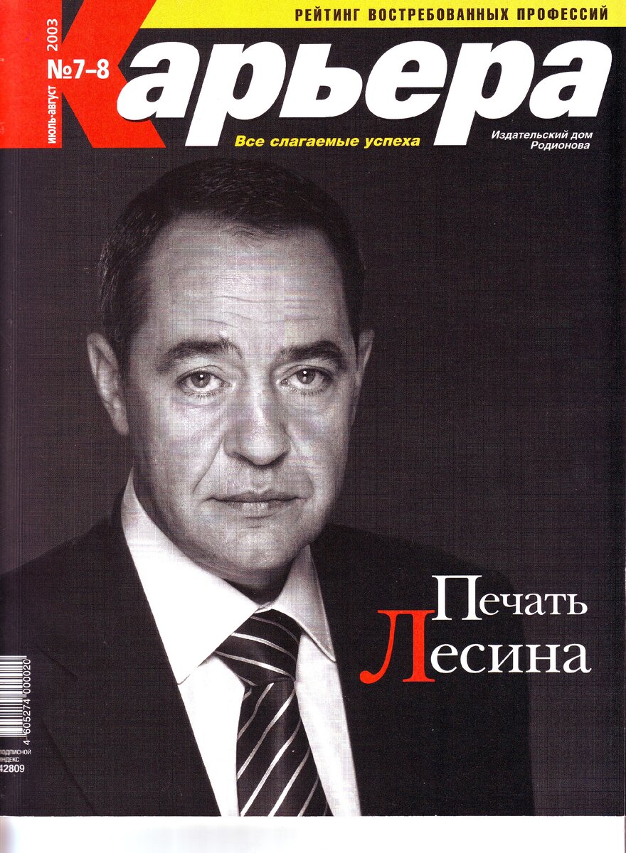 Как и обещал, прямая речь Михаила Лесина, записанная для журнала "Карьера", который я возглавил в тот год (2003). Три фрагмента,,, Жизнь удалась? Каждый человек имеет право на собственное видение истории. Сегодня много говорят о традициях, о том, какая у нас великая история, но, по большому счету, мы свою историю не знаем. Мы мечемся и не можем найти ни своего места, ни своей идеи. Потому что не знаем себя. Нас много лет заставляли учить историю, которой не было. Успешной жизнь можно назвать тогда, когда человек добивается либо того, чего он хочет, либо того, что приносит реальное удовлетворение и дает ему возможность чувствовать себя успешным. Важно, как человек сам себя оценивает и сам себя чувствует. Бывает, что человек вроде ничего особо и не добился, но чувствует себя уверенно и спокойно, и все у него хорошо. А бывает, что вроде бы все есть, а чего-то главного не хватает. В слова “жизнь удалась” каждый вкладывает свой смысл. Качество жизни зависит от потребностей. Нашему пок