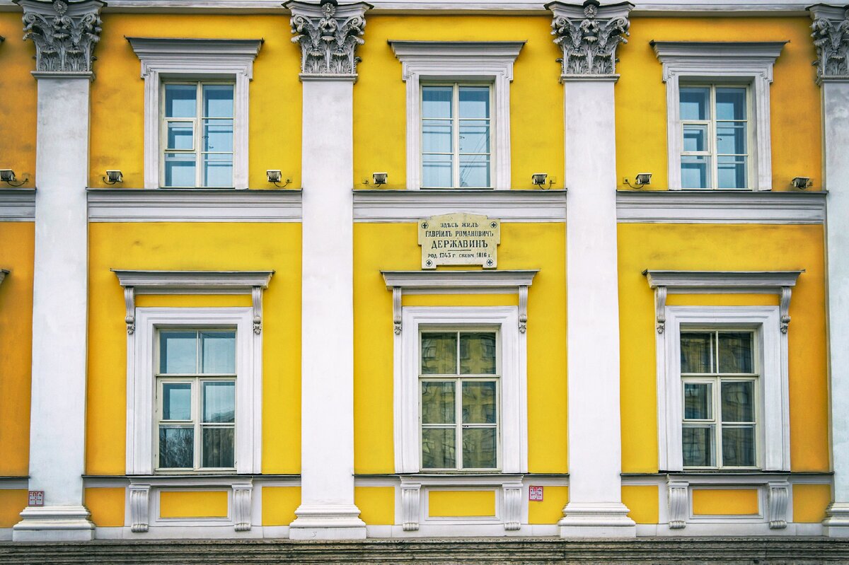 Поэт приобрел особняк на набережной Фонтанки в 1791 году и прожил в нём четверть века. Дом был построен «под смотрением» архитектора Г.П.Пильникова по проекту ближайшего друга поэта, архитектора Н.А.Львова. В течение четверти века дом Державина был своеобразным центром русской литературы конца ХVIII - начала ХIХ века. Здесь постоянно встречались писатели и поэты, Д.И.Фонвизин, Н.А.Львов, В.В.Капнист, М.Н.Муравьев, Н.М.Карамзин, И.А.Крылов, В.А.Жуковский, С.Т.Аксаков. Частыми гостями дома были художники Д.Г.Левицкий и В.Л.Боровиковский, композиторы И.Б.Прач и О.А.Козловский, Е.И.Фомин и Д.С.Бортнянский. В Большом зале первого этажа собирались участники «Беседы любителей русского слова», а в Домашнем театре играли пьесы с участием знаменитых актеров А.С.Яковлева и И.А.Дмитревского.