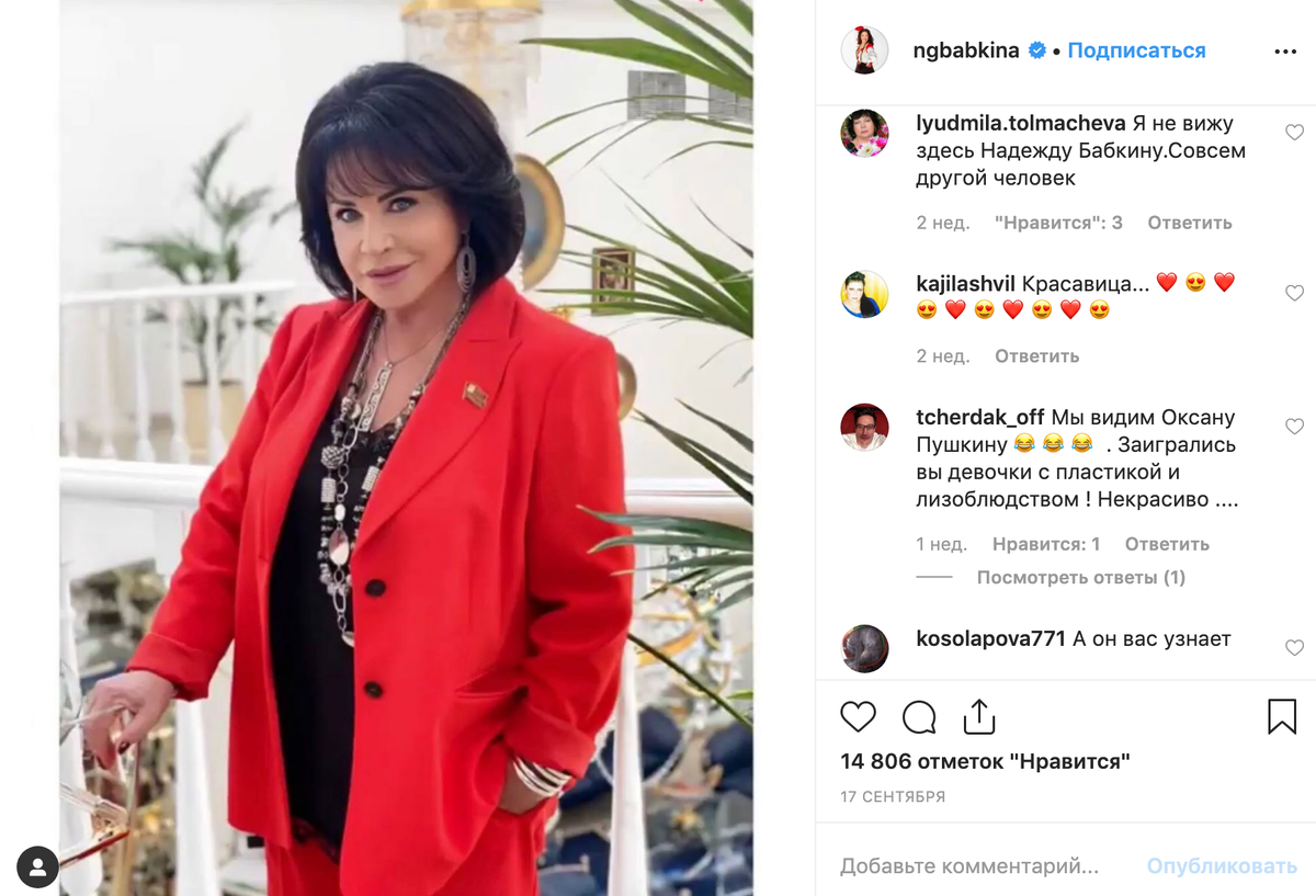 Надежда Бабкина активно ведет Instagram аккаунт, за которым наблюдает более трех сотен подписчиков. Под последними постами резко увеличивается число комментариев.