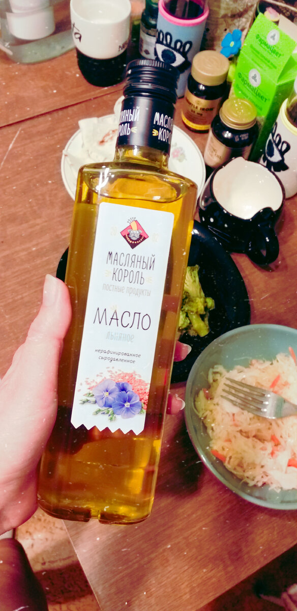 Идеальное льняное масло на твоем столе: Холодный отжим. Цвет: золотистый Вкус :мягкий, терпкий, но без горечи! Для меня это вкус рыбьего жира и мне нравится)🐠 ✔Выбирай масло в темной бутылочке, так оно хранится дольше на магазинных полках. ✔Открытое масло храни в холодильнике! Оно особенно восприимчиво к реакции полимеризации при взаимодействии с кислородом. ✔В течение 2 недель-месяца бутылочку необходимо будет употребить в пищу, тк в течение этого времени масло будет быстро окисляться и портиться! ✋Прогоркшее масло не пригодно в пищу! Льняное масло-это Триглицерид. Содержит очень много альфа-линолевой кислоты(ALA). ➕Плюсы: Снижает плохой холестирин Налаживает работу ЖКТ Улучшает состояние кожи Разжижает кровь (что актуально при варикозе) Облегчает симптомы климакса (содержит природный эстроген) Линолевая кислота(незаменимая жирная кислота) Липиды Омега-3,-6( улучшает работу гормональной системы, состояние кожи) Витамин А Холин( синтез стероидов) В6 Ниацин( прогестерон) Альфа-то